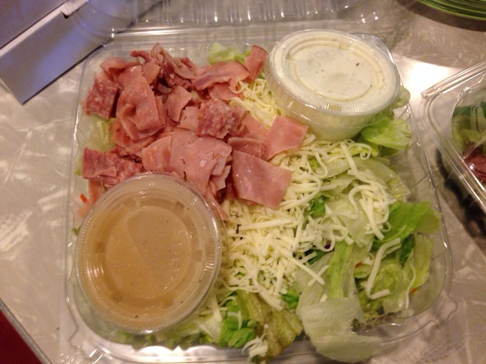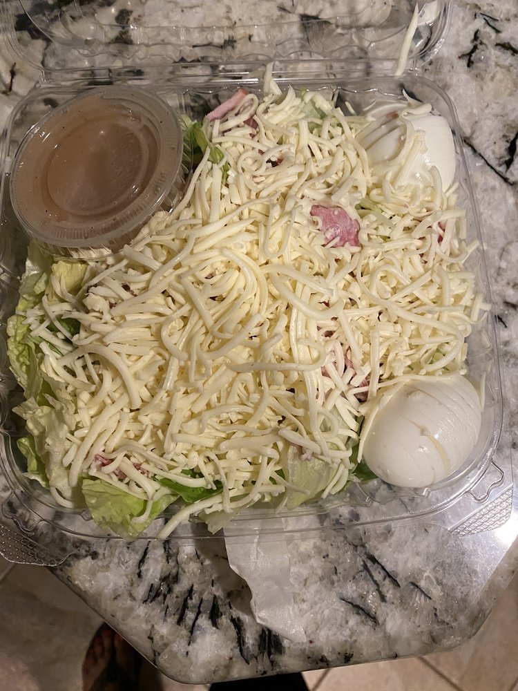 Fresh lettuce, Provel cheese, diced ham, salami, roast beef, and hard- boiled egg. This item comes with a dressing of your choice.