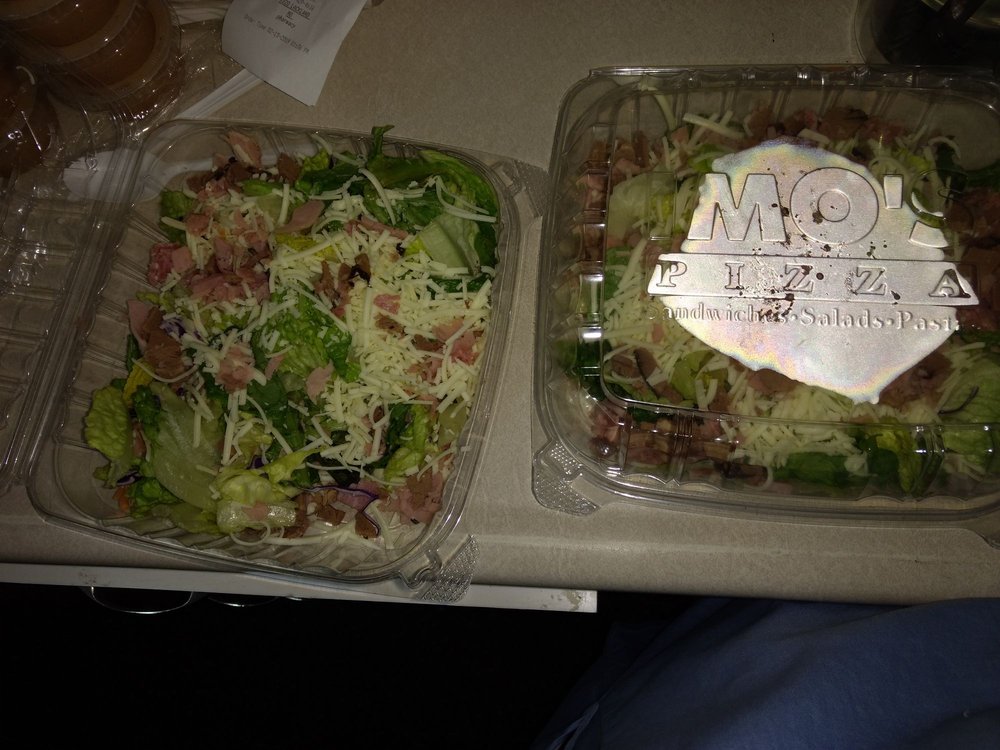 Served on hot garlic cheese bread. Lettuce, mushrooms, tomatoes, onions, green peppers, black olives, and vinaigrette dressing.